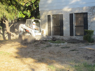 Todd mapped out where the electrical conduit was to run power to our street light and where our water comes into the house. This didn't get effectively communicated. As a result of this, and of the electrical conduit not being buried deeply enough, they broke the conduit run out to the street light, so we will have to replace that. On the bright side, they brought a trench digger to help dig for the new foundation work and were able to dig a new, deeper trench for the conduit pretty quickly for us. It was a fun piece of equipment to watch!
